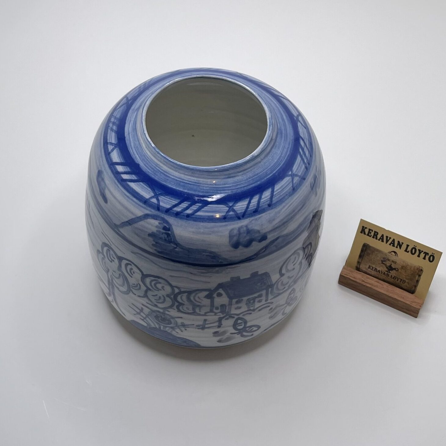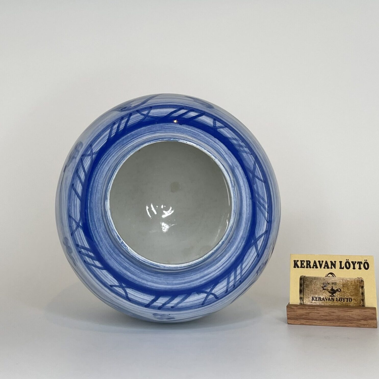 Color: White with blue decorative painting. Hand-painted.