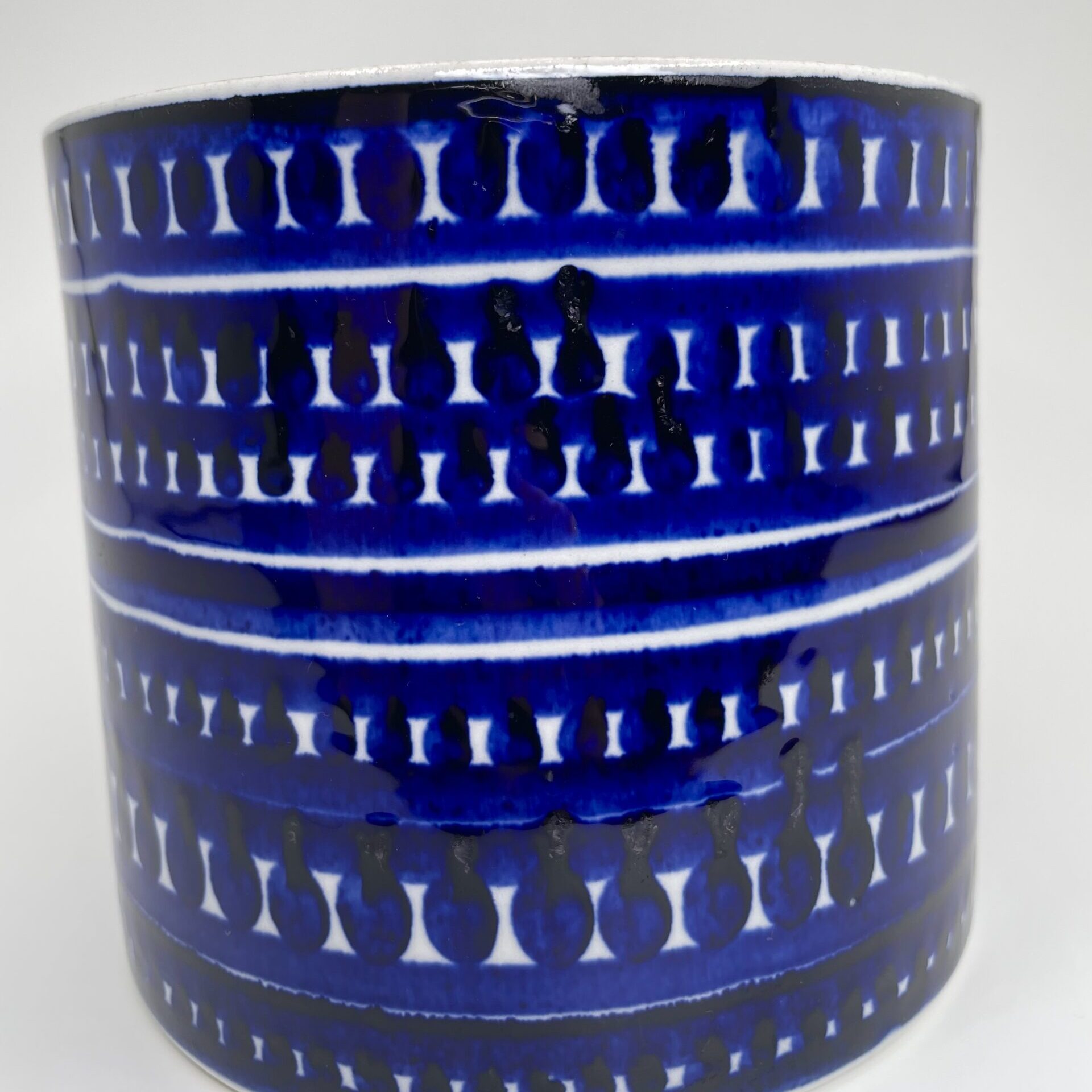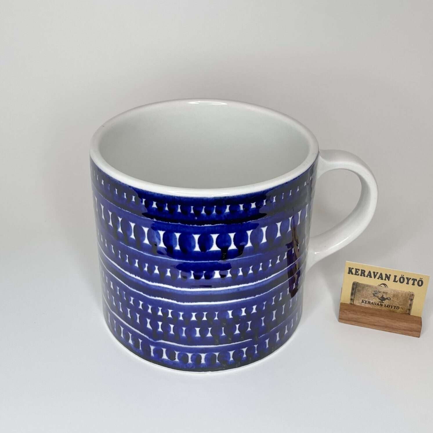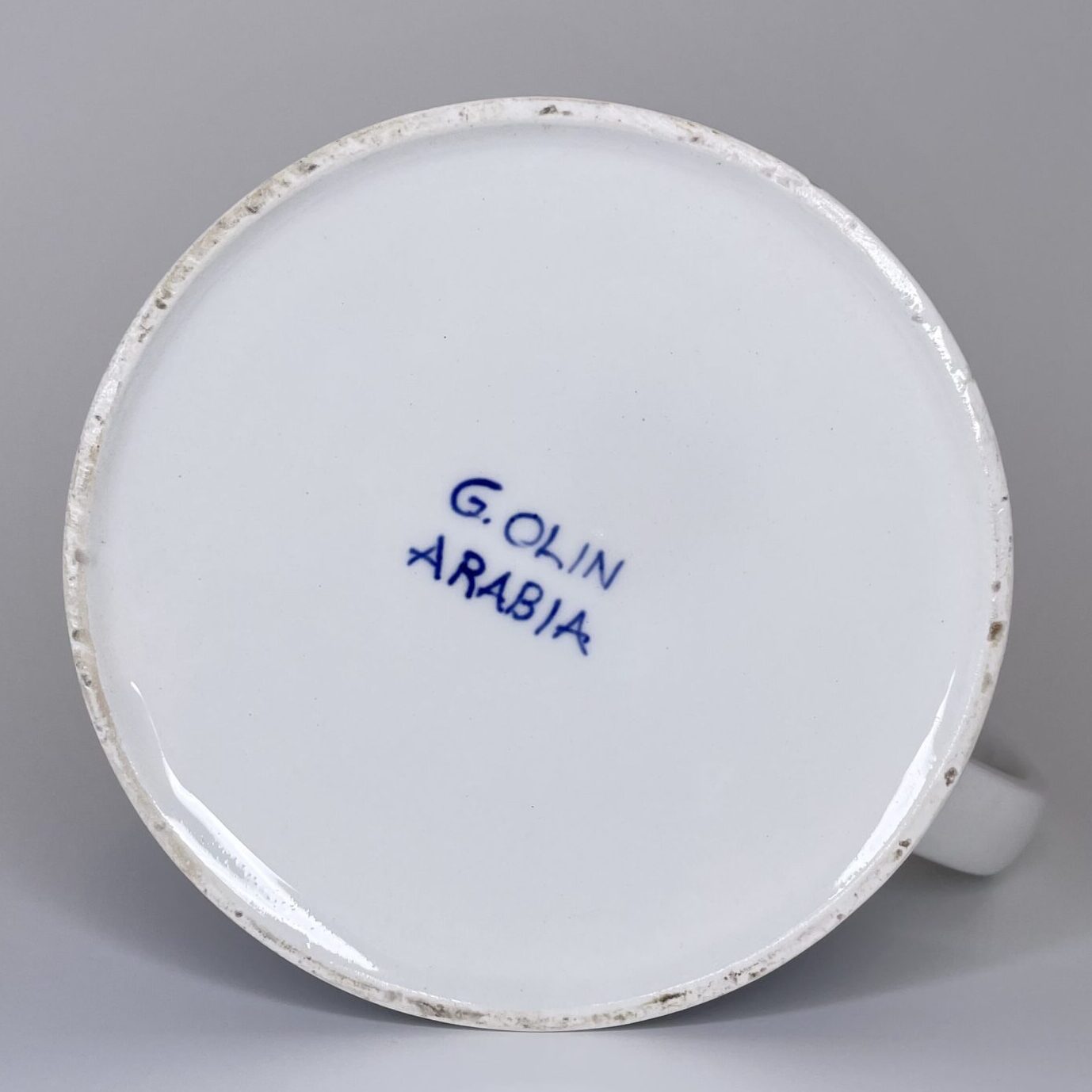 Observations: Most likely production-related marks on the side of the cup, little crack under the glaze at the bottom edge and slight wear on the bottom. Shown in the pictures.