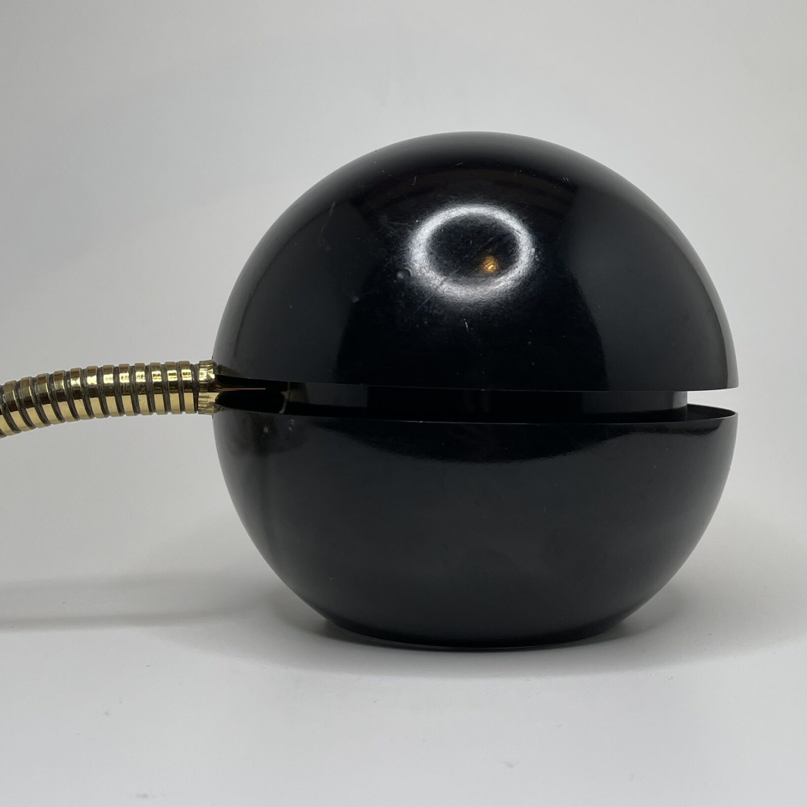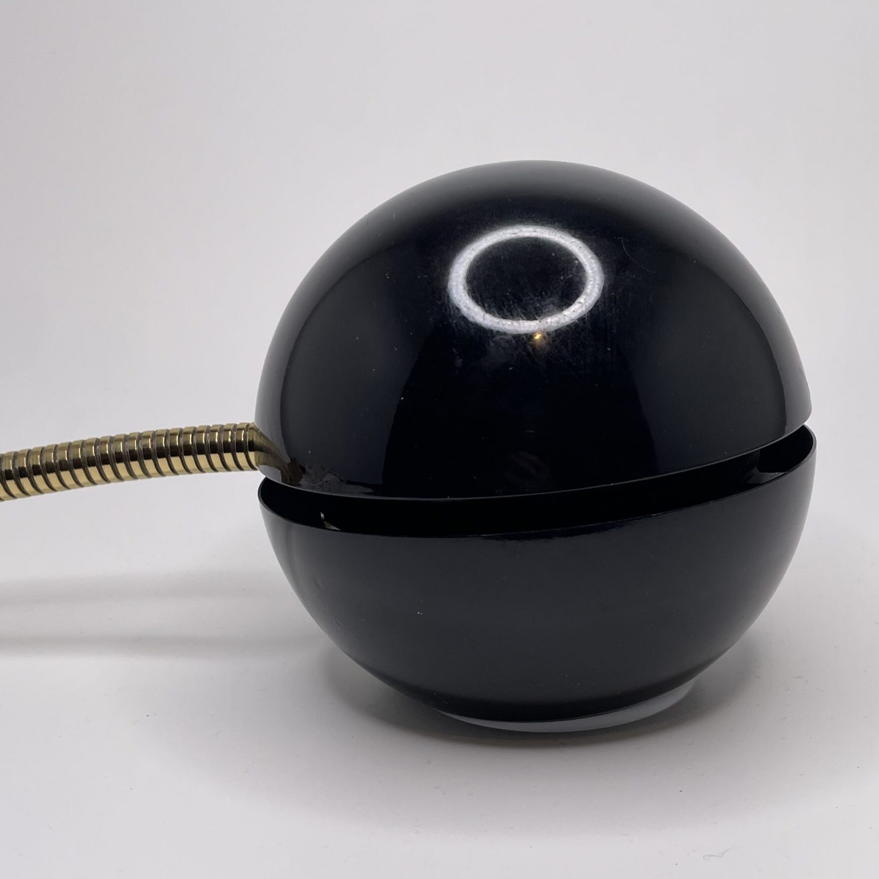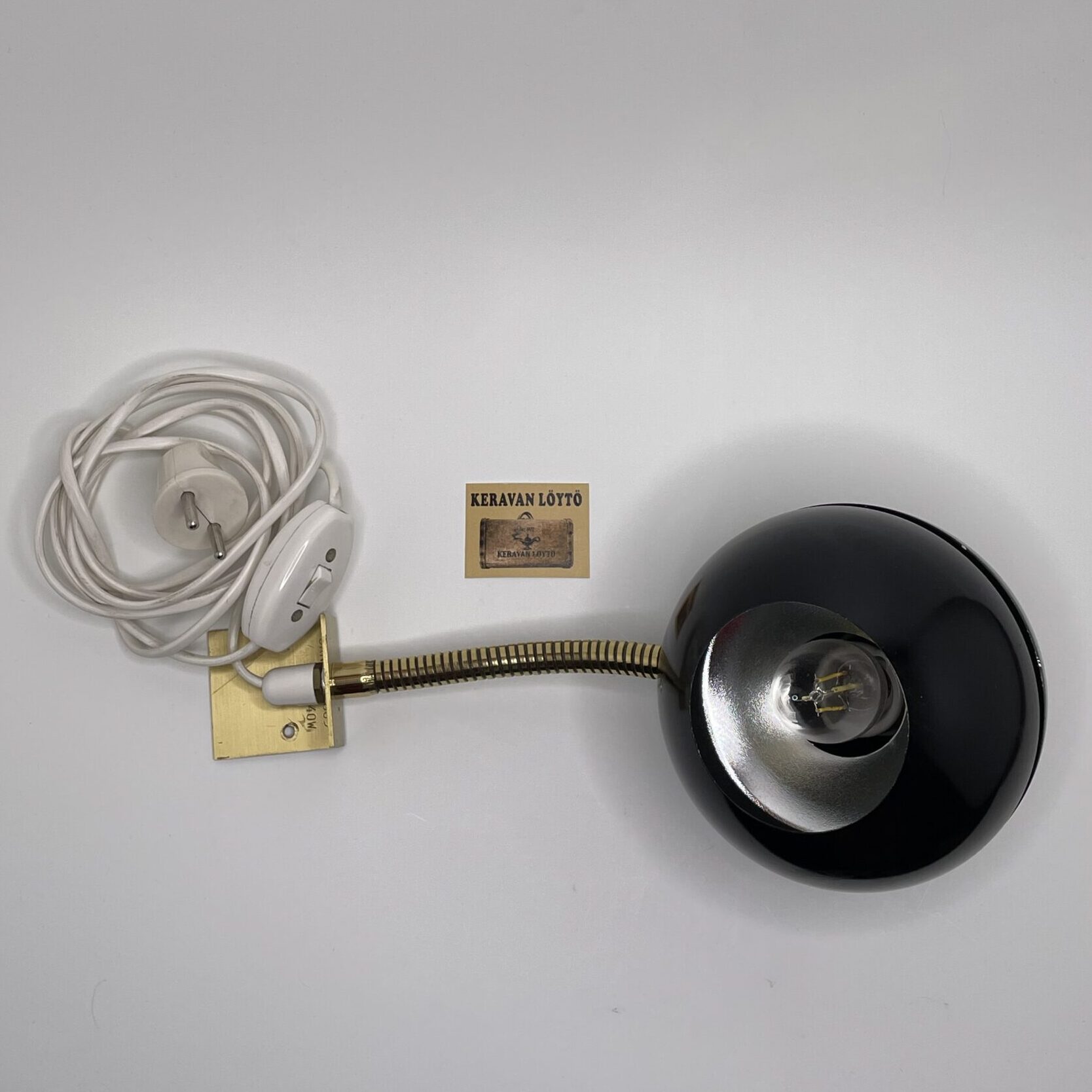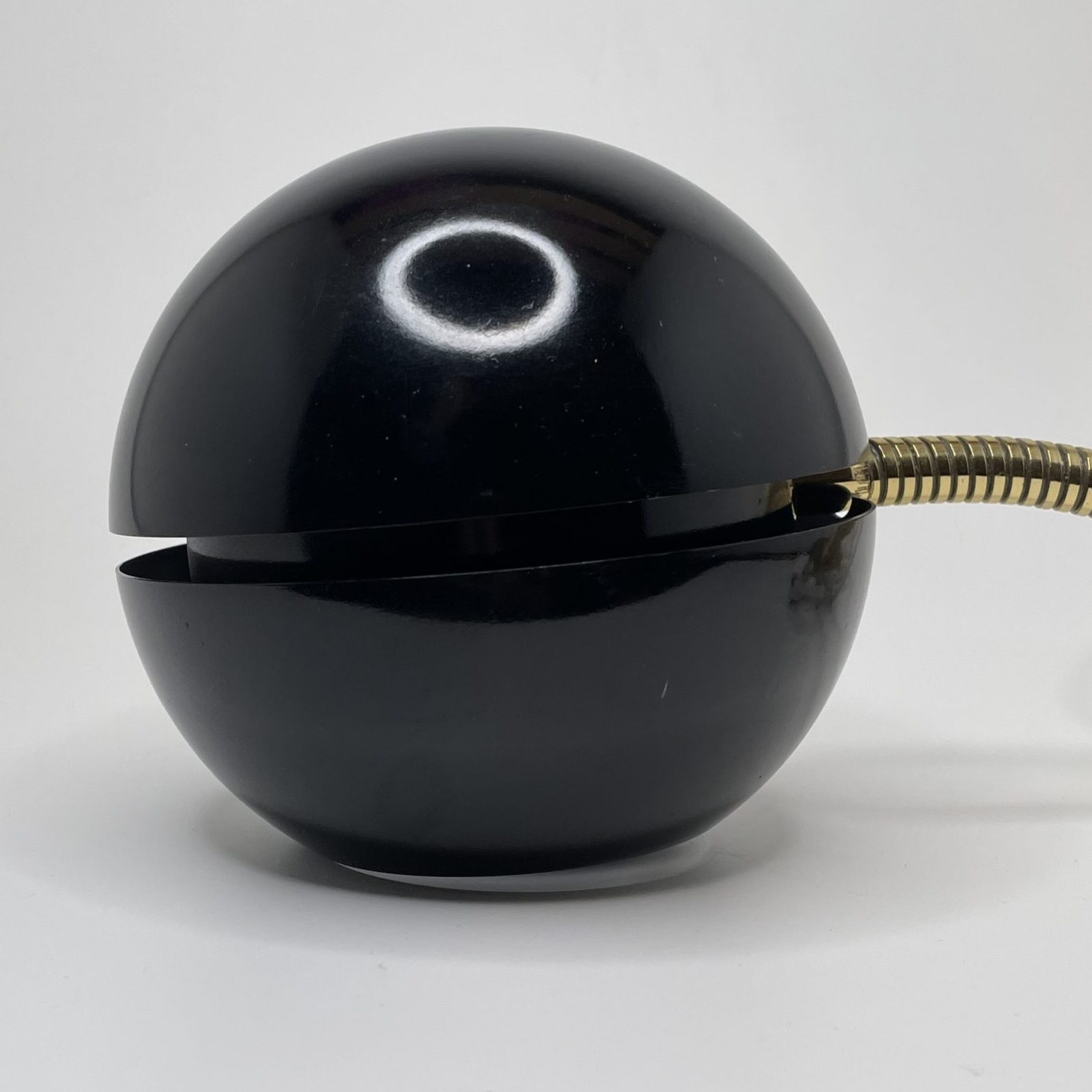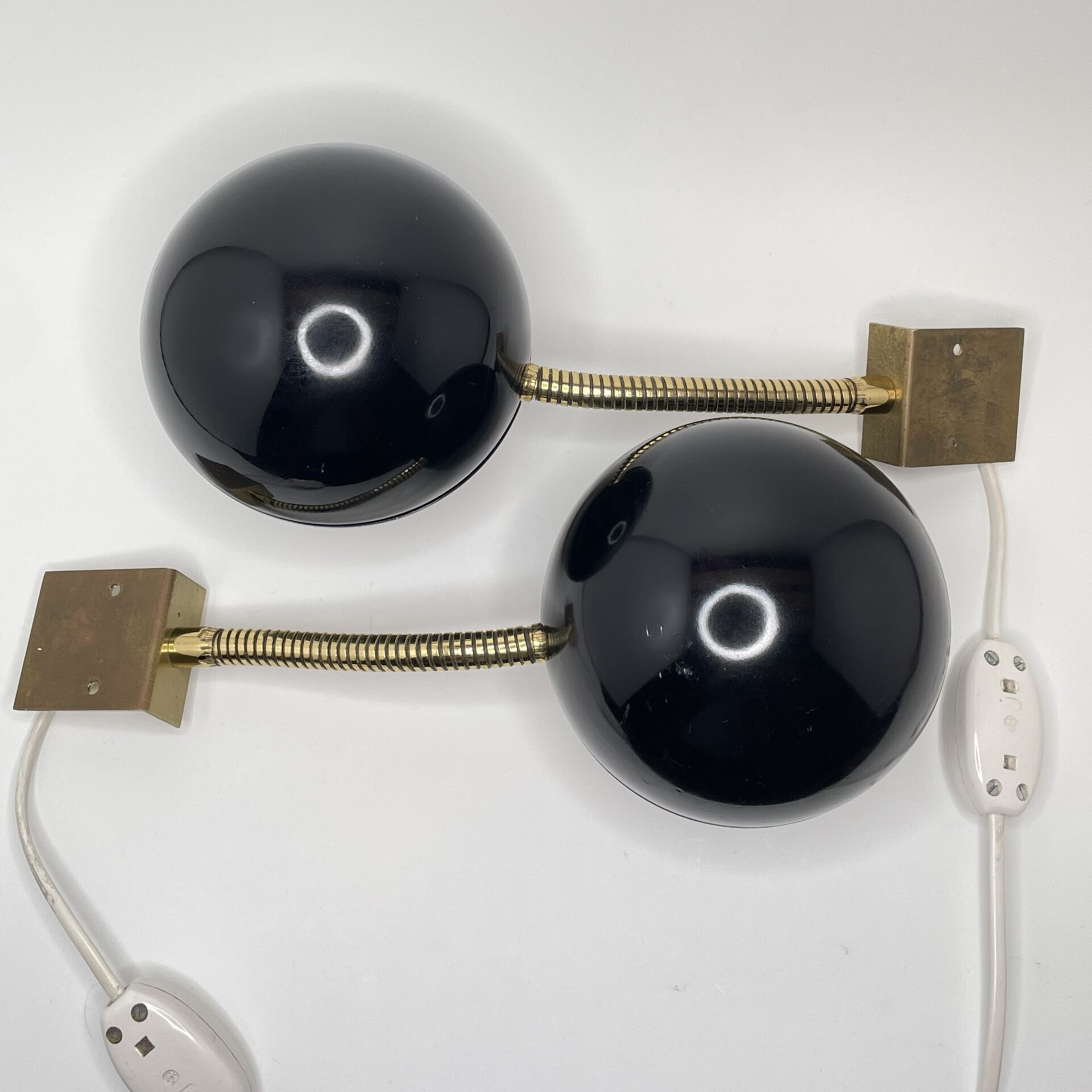 Material: Black painted metal shade and adjustable brass arm