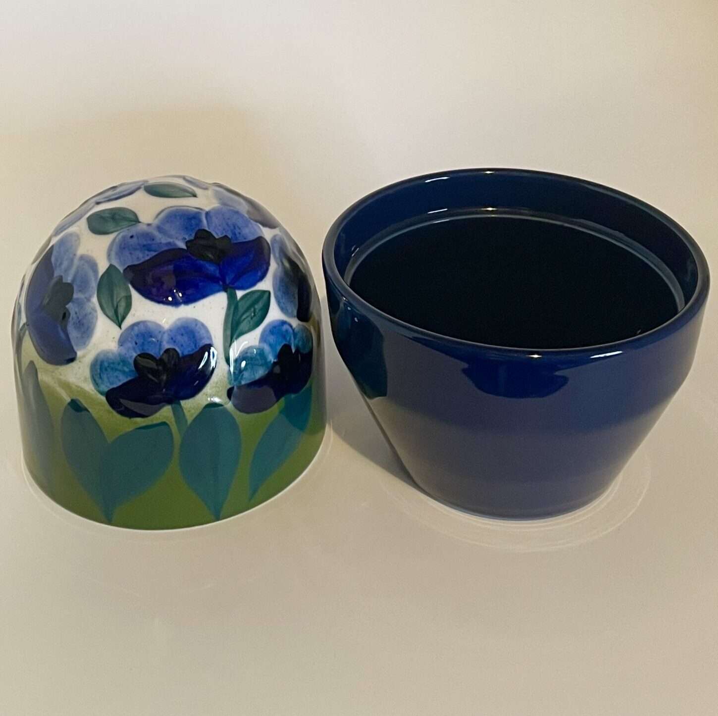 Color: Blue base with blue-green decorative flower hand-painting on top