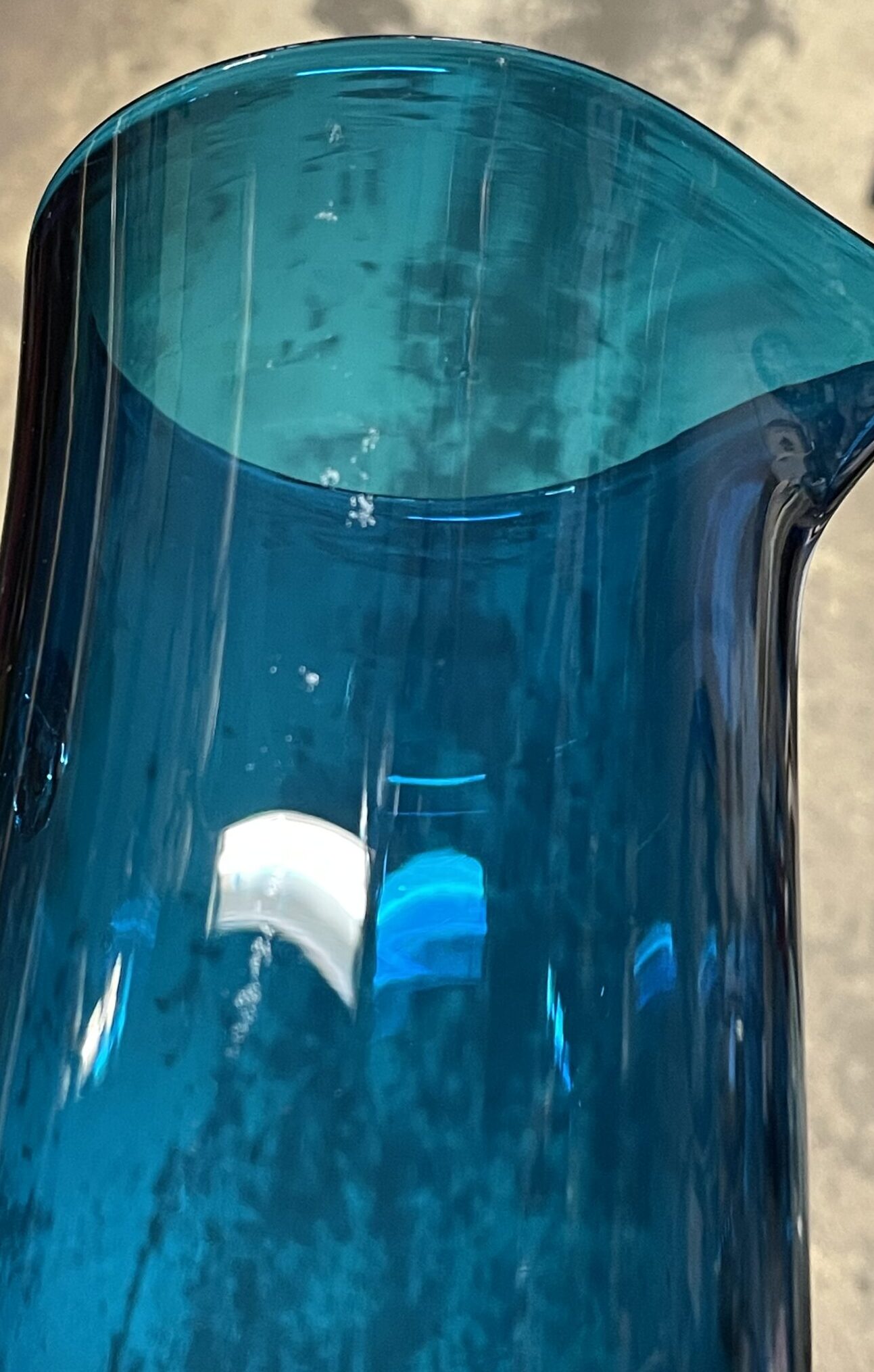 According to legend, the color of the series was inspired by a piece of glass Nanny Still found on the shore of the Mediterranean, and it is called Mediterranean blue.