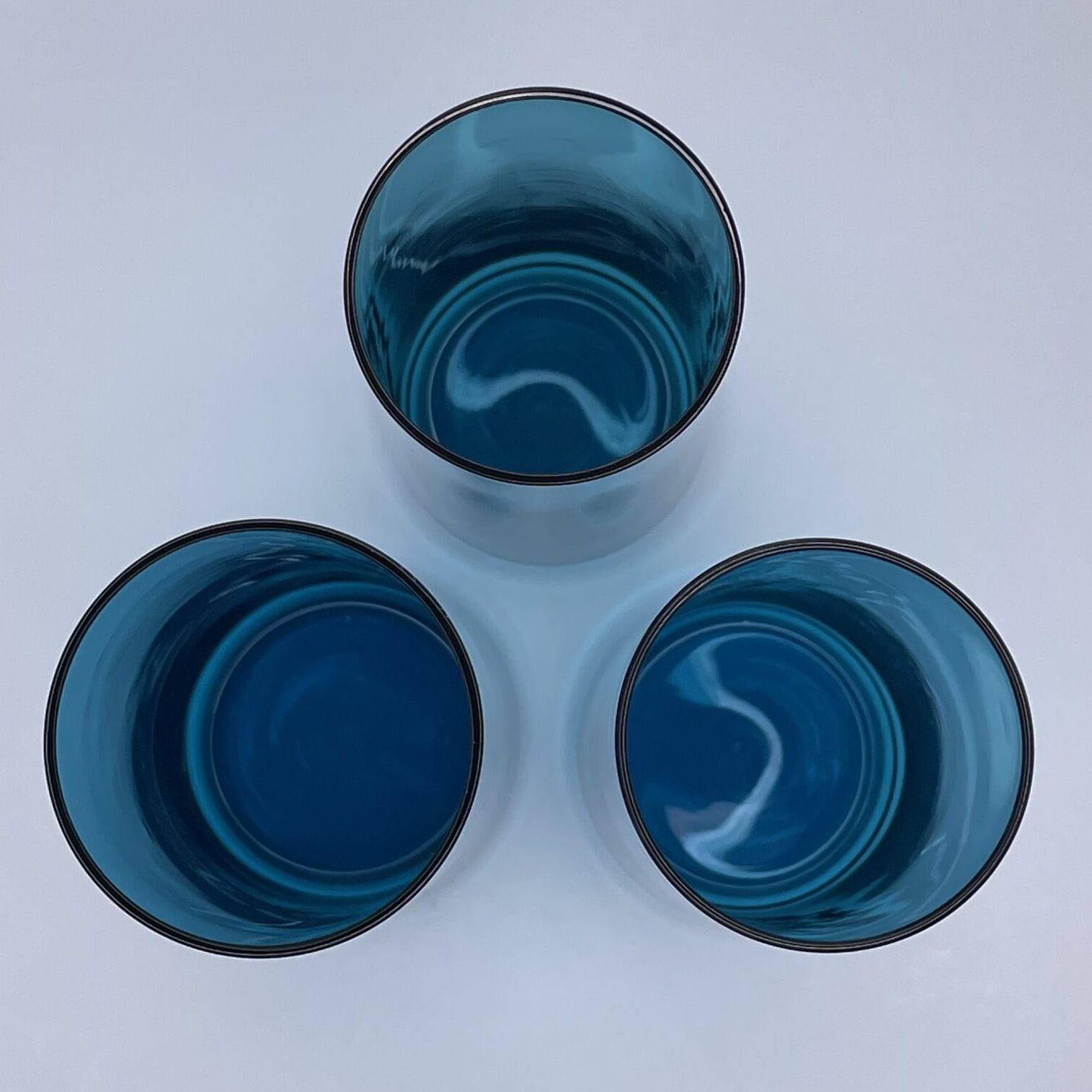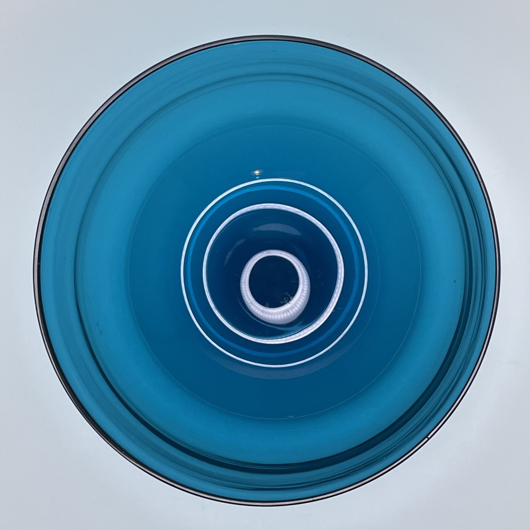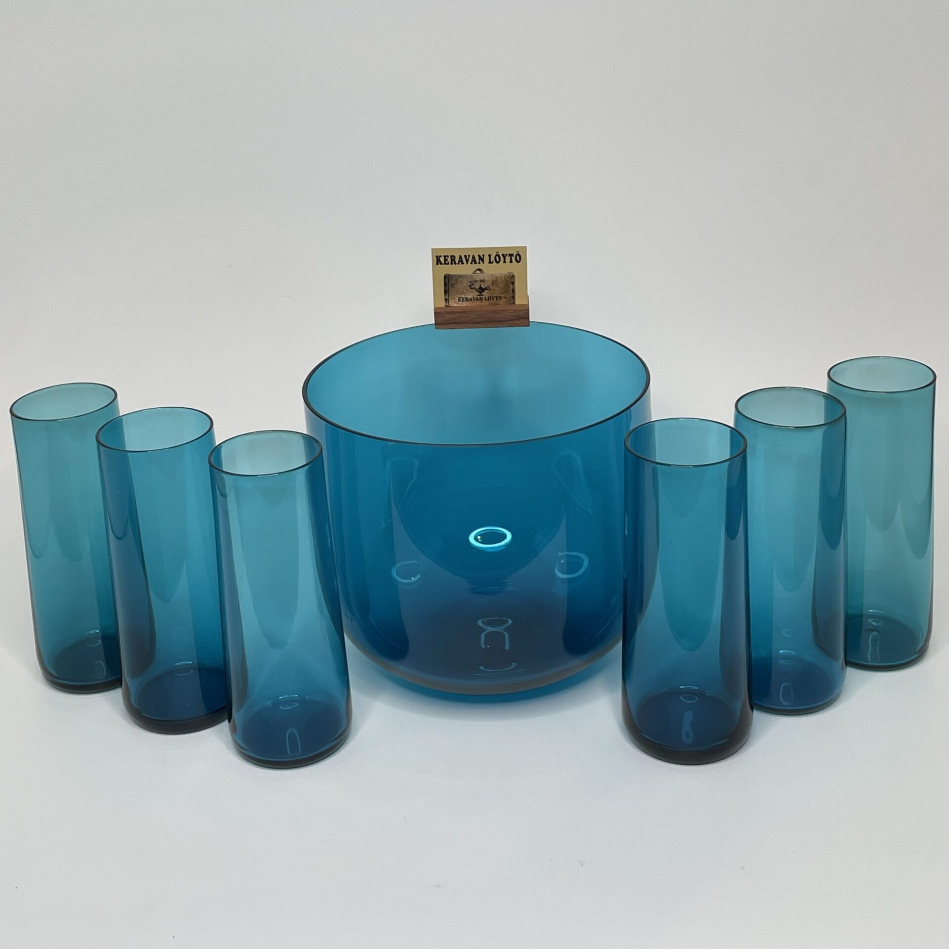 According to legend, the color of the series was inspired by a piece of glass Nanny Still found on the shore of the Mediterranean, and it is called Mediterranean blue.
