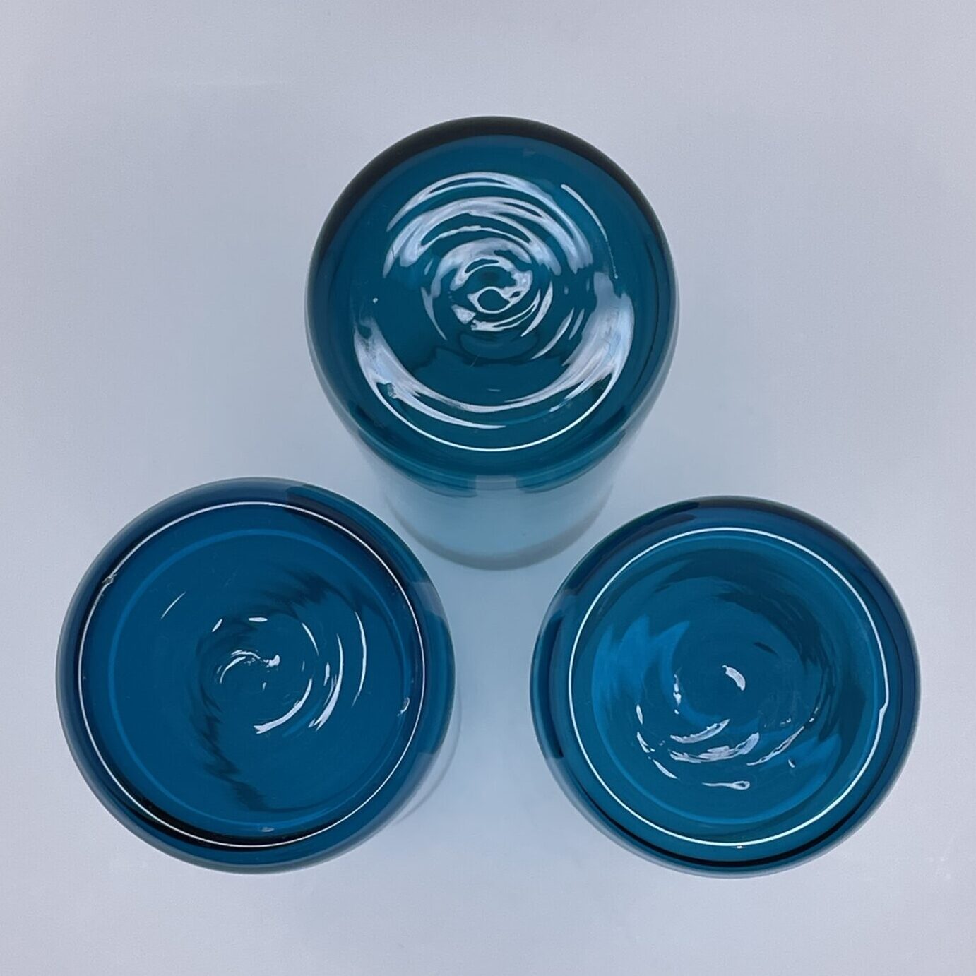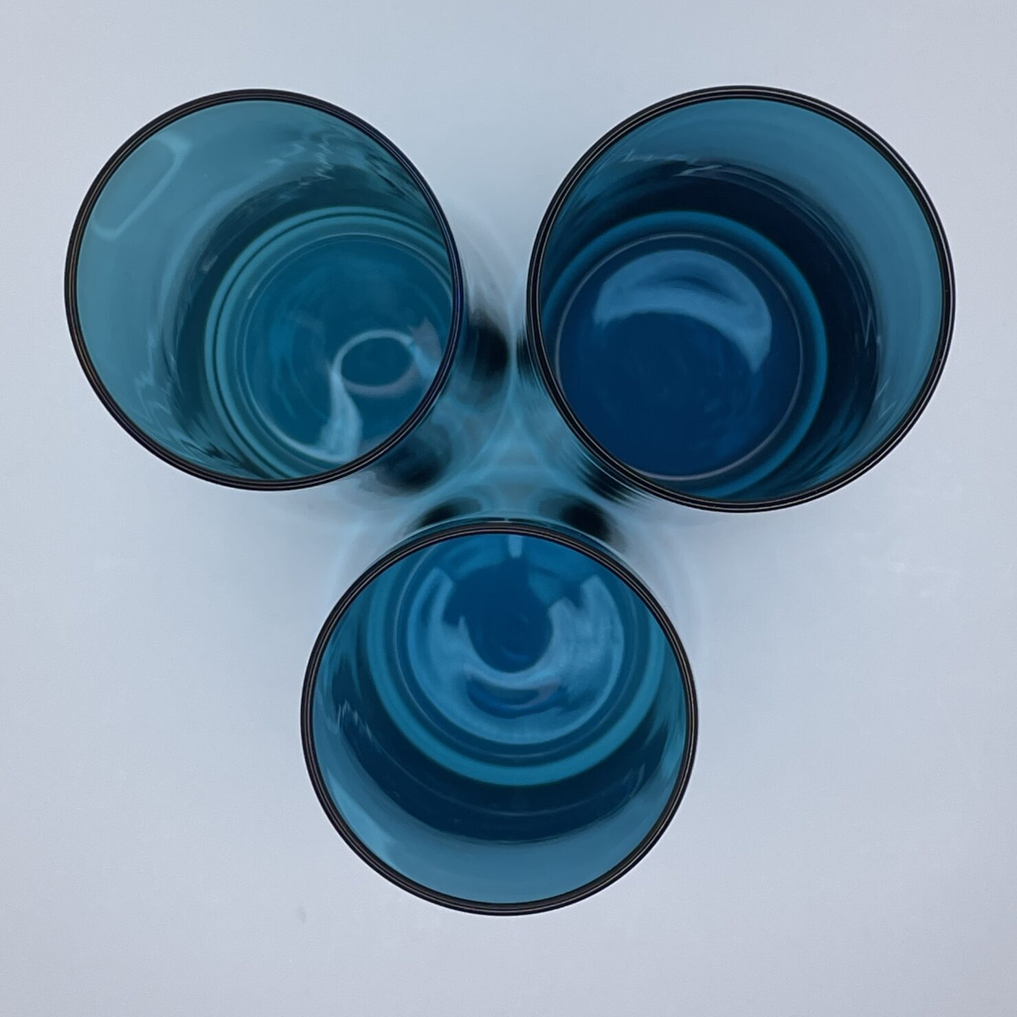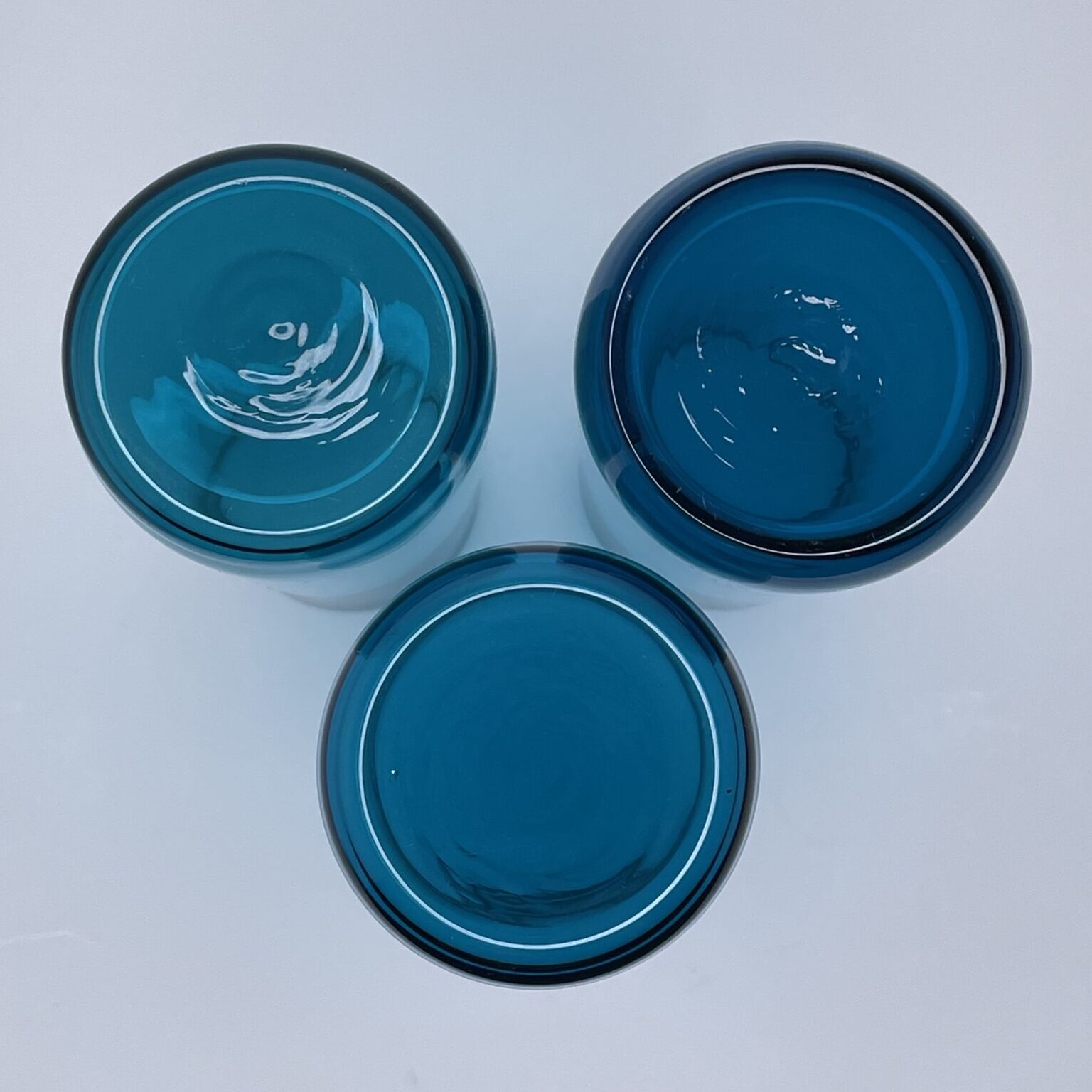 According to legend, the color of the series was inspired by a piece of glass Nanny Still found on the shore of the Mediterranean, and it is called Mediterranean blue.