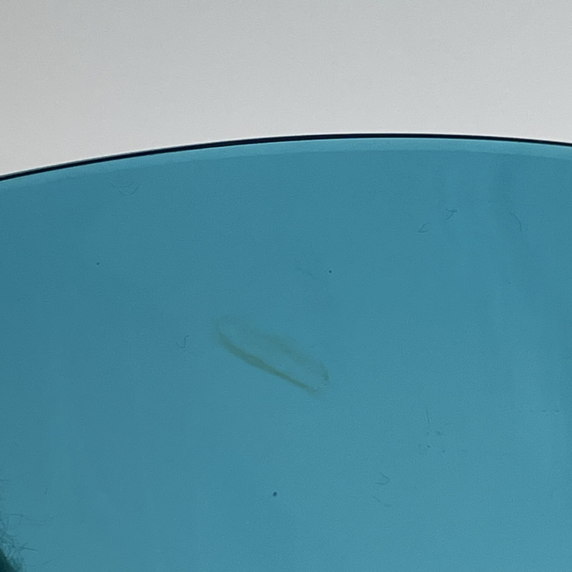 Observations: Small air bubbles in the glass mass, slight wear on the bottoms. The bowl has some small cracks on the top edge. The juice glasses are intanct, only minor wear on the sides. There is a slight color difference in the glasses.