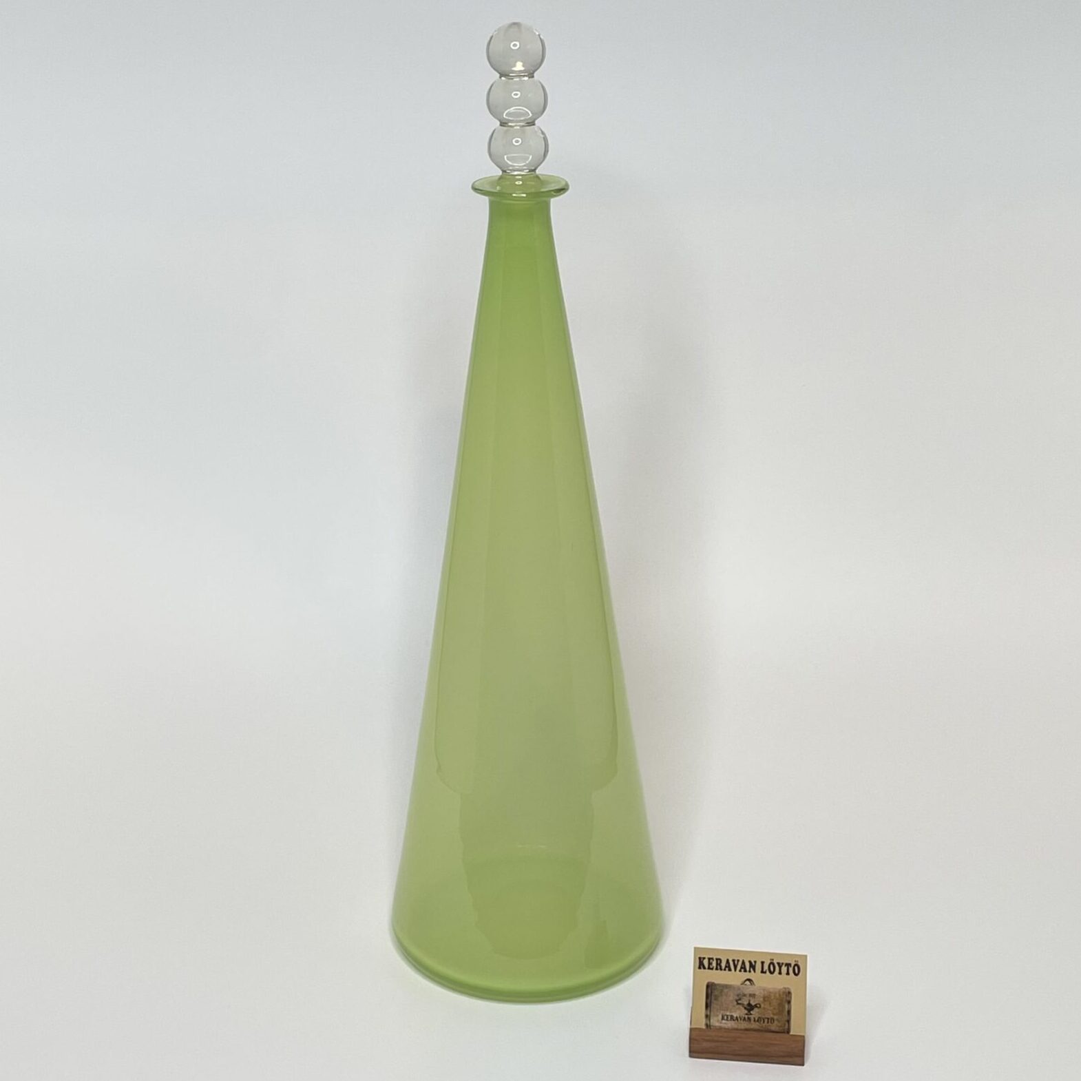 Nanny Still was a Finnish glass artist. In 1949, Still won Riihimäen Lasi’s Nordic design competition, which led to her being hired by the factory. She is best known for the works she created for Riihimäen Lasi. At the factory, she designed both art glass and utility glass objects. Still worked at the Riihimäki glassworks until the 1970s. Later, while living in Belgium, her artistic career continued with designing pieces for Rosenthal’s glassblowing workshop. Over the course of her versatile career, Still designed almost everything from jewelry to frying pans. For her achievements, Still was awarded the Pro Finlandia Medal in 1972.