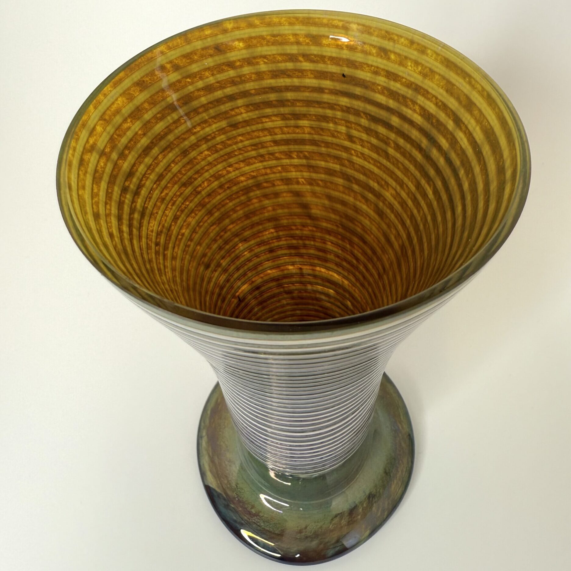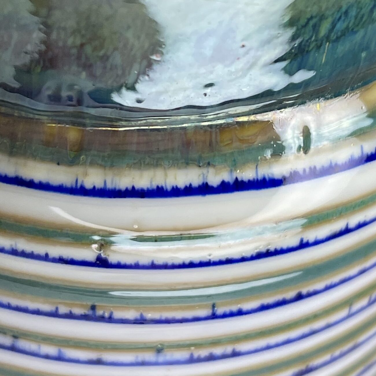Observations: Small cracks at the top edge and on the bottom edge of the vase, little wear on the bottom. Shown in the pictures.